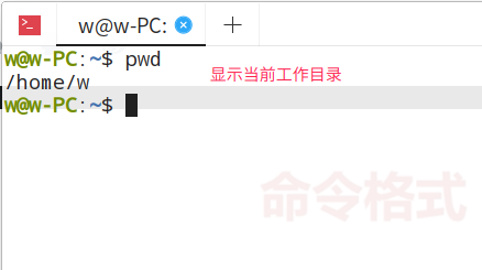 w表示当前登录用户。超级用户是root。w-PC表示主机名。默认的主机名是localhost。~表示当前目录(家目录(/home/w),而如果是超级用户,则家目录是/root)$表示普通用户的提示符。超级用户的提示符是#。